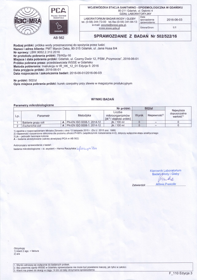 - 100% Czystości – filtrowana woda, najwyższe standardy HACCP.